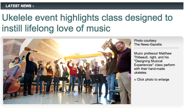 Update on 10/31: Another short piece about the class ran in the campus newspaper, the Daily Illini, “Ukulele gives music education class a new dimension.”