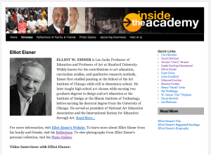 for an episode of Inside the Academy, ASU’s version of Inside the Actor’s Studio. The episode features the work of my mentor, Elliot Eisner, and the video and supplementary materials are wonderful.