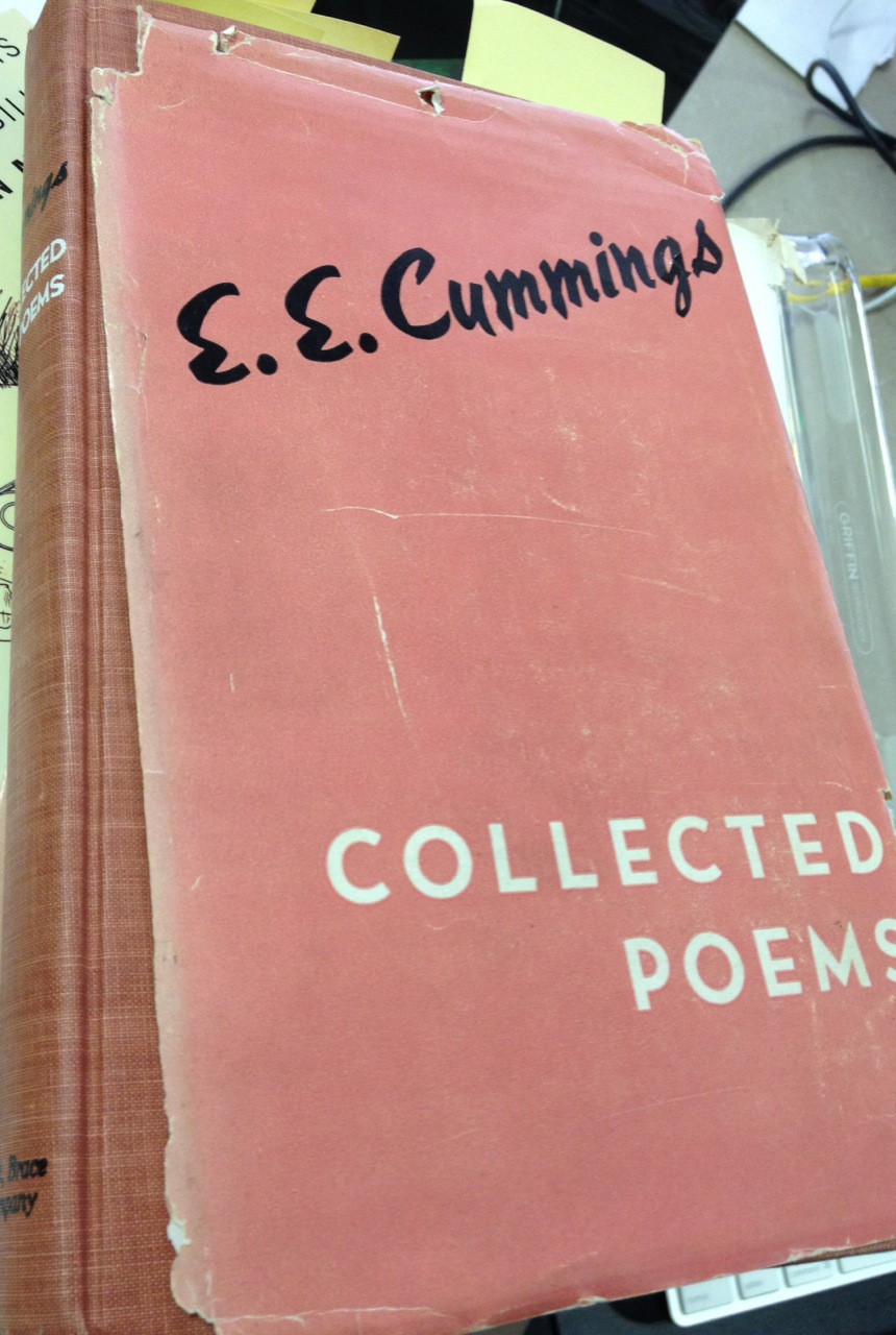 When Elliot retired, he entrusted me with some of his books. Today’s news sent me to my office to look through them. In his heavily worn copy of E.E. Cummings poems, I found a passage he had marked: